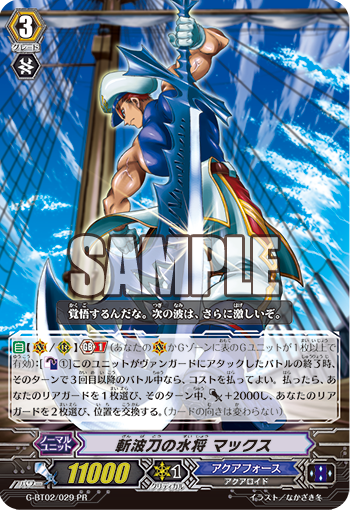 【自】【(V)/(R)】【Gブレイク】(1)(あなたの(V)かGゾーンに表のGユニットが1枚以上で有効):[【カウンターブラスト】(1)]] このユニットがヴァンガードにアタックしたバトルの終了時、そのターンで3回目以降のバトル中なら、コストを払ってよい。払ったら、あなたのリアガードを1枚選び、そのターン中、パワー+2000し、あなたのリアガードを2枚選び、位置を交換する。(カードの向きは変わらない)
