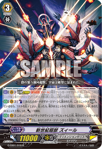 【起】【(V)】:【双闘21000】「銀河超獣 ズィール」(相手ヴァンガードがグレード3以上なら、このユニットは1度だけドロップゾーンから4枚山札に戻し、山札から指定カードを探し、双闘できる)